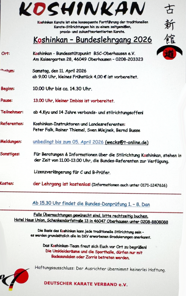 11.04.: Koshinkan Bundes-Lehrgang mit Bundes-Danprüfung