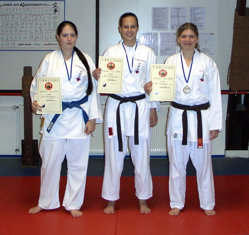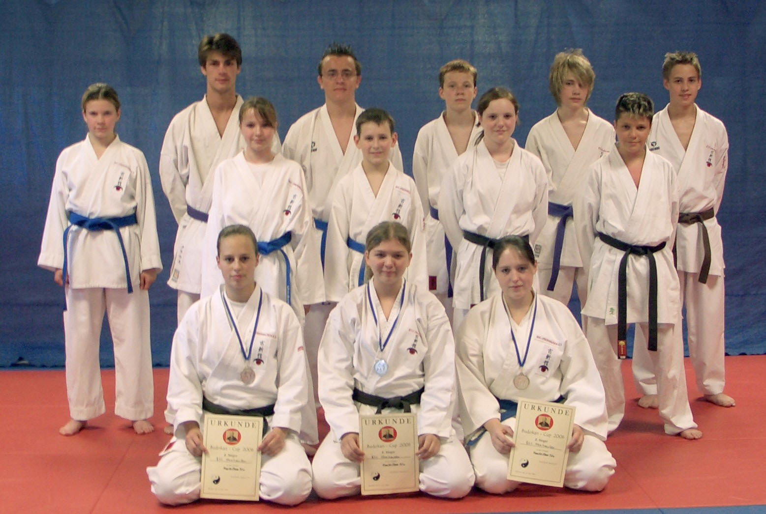 /Bochum 10.06.2006 Bei einer Teilnehmerzahl von 536 schlugen sich unsere Aktiven beachtlich, mussten doch einige gegen Gegner antreten die teilweise 30cm größer waren. Alle gaben ihr Bestes, der Kampfgeist und Einsatz des BSC-Teilnehmer war lobenswert. Auch die große Unterstützung vieler mitgereister Eltern half unseren Karatekas die ersten Kämpfe zu überstehen. Leider hat es für Einige nicht zu dem erhofften Erfolg geführt. Aber so ist es nun mal im Sport, Sieg und Niederlage liegen eng beieinander. Nur den Kopf nicht hängen lassen, beim nächsten Mal klappt es bestimmt! Doch der eindrucksvolle 2. Platz unserer Mädchen im Kumite-Team und der 3.Platz bei den Junioren, hat uns alle für den Einsatz und den langen Tag in der Sporthalle entschädigt. 2. Platz Kumite-Team Mädchen Herzliche Glückwünsche vom BSC-Team!!! Wir bedanken uns bei allen Teilnehmern, Betreuern, Eltern und Mitgereisten! Das BSC-Team |